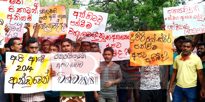 වසර 5කට අධික කාලයක් සේවය ස්ථීර නොකළ මෙම සේවකයින්ගේ සංඛ්‍යාව 1500ක් වන අතර මොවුන් ස්ථීර සේවයේ පිහිටුවන ලෙස ඉල්ලමින් මෙලෙස විරෝධතාවයේ නිරත වෙමින් සිටීයි.
