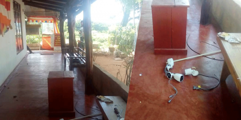 ලොකු හාමුදුරුවෝ පිරිවෙ‍නේ වැඩකට වැඩම කරලා ඉන්න හින්දා මම තමයි විහාර‍ය තාවකාලිකව බලා ගන්නේ.අපි කැමරා හයි කරමින් ඉන්නකොට මුලතිව් පොලිසියේ කට්ටියක් ආවා.ඇවිල්ලා කිව්වා පන්සලේ සිසිටිවි කැමරා හයි කරන්න බෑ කියලා.වහාම හයි කරපුවා ගලවන්න කියලා.මට කිව්වා ඔයා පන්සල බලාගන්නවානම් ඇවිල්ලා බලලා විතරක් යන්න කියලා.