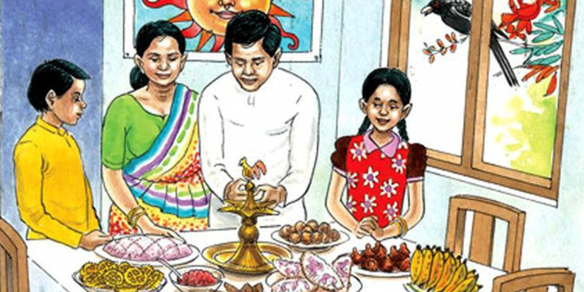 අප්රේල් මස 13 වැනි සඳුදා අපරභාග 10.05 ශ්වේත වර්ණ(සුදු) වස්ත්රාභරණයෙන් සැරසී නැගෙනහිර දිශාව බලා ලිප් බැඳ ගිනි මොළවා කිරි මිශ්ර කිරිබතක් ද තල මිශ්ර කැවිලි වර්ගයක් ද සහ අග්ගලා පිළියෙල කරනු මැනවි.