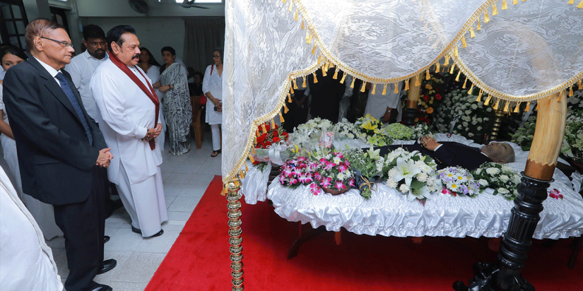 අග‍්‍රාමාත්‍ය මහින්ද රාජපක්ෂ මහතා අද (26) සවස අභාවප‍්‍රාප්ත වූ ශ්‍රේෂ්ඨාධිකරණ විනිසුරු ප‍්‍රසන්න ජයවර්ධන මහතාට අවසන් ගෞරව දැක්වීය.