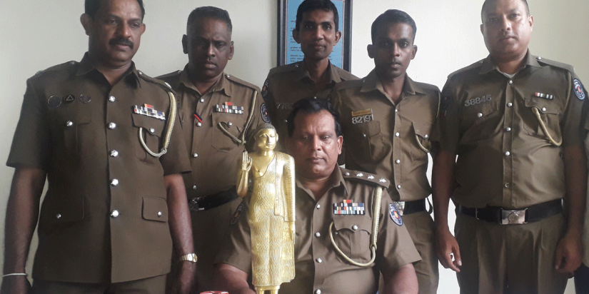 අගල් 18 ක් උස කිලෝ ග්රෑම් 11 යි ග්රෑම් 805 යි බරැති දඹරන් හිටිපිළිම වහන්සේ නමක් සහ අගල් දෙකක් උස ග්රෑම් 152 ක් බර කහපැහැති හිදි පිළිම වහන්සේ නමක් සැකකරුවකු සතුව තිබි පොලිස් භාරයට ගෙන තිඛේ.
