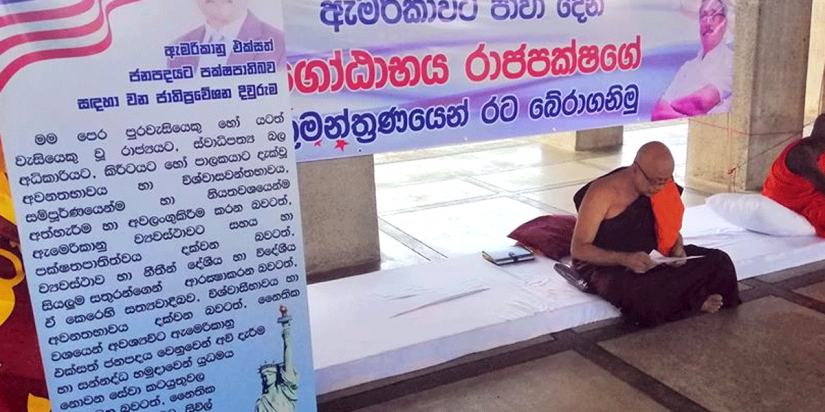 ගෝඨාගේ අමෙරිකානු පුරවැසිභාවය ඉවත්කරගත් බවට තහවුරු කරනතෙක් හිමිනමක් උපවාසයක November 10, 2019 10:30 am No Comments ආචාර්ය පූජ්ය ඉගුරුවත්තේ සුමංගල හිමි කොළඹ නිදහස් චතුරශ්රයේ උපවාසයක් ආරම්භ කර ඇත. ඒ, ගෝඨාභය රාජපක්ෂ මහතාගේ අමෙරිකානු පුරවැසිභාවය ඉවත්කරගත් බවට දින 3 ක් තුළ තහවුරු කළ යුතු බව පවසමින්ය.