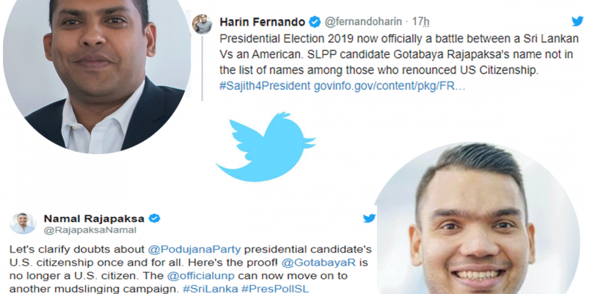 ගෝඨාගේ ඇමෙරිකානු පුරවැසිභාවය ගැන හරීන්ගේ ටිව්ටර් පණිවුඩයට නාමල්ගෙන් උත්තර