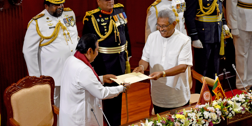 නව අග්රාමාත්යවරයා ලෙස මහින්ද රාජපක්ෂ මහතා දිවුරුම් දෙයි November 21, 2019 1:10 pm No Comments නව අග්රාමාත්යවරයා ලෙස මහින්ද රාජපක්ෂ මහතා මීට සුළු වේලාවකට පෙර දිවුරුම් දුන්නේය. ඒ, ජනාධිපති ලේකම් කාර්යාලයේදීය. මහින්ද රාජපක්ෂ මහතා අග්රාමාත්ය ධූරයේ දිවුරුම් දුන්නේ ජනාධිපති ගෝඨාභය රාජපක්ෂ මහතා ඉදිරියේදීය. මේ අවස්ථාවේ පාර්ලිමේන්තු මන්ත්රීවරුන් රැසක් ද සහභාගි වී සිටියහ.