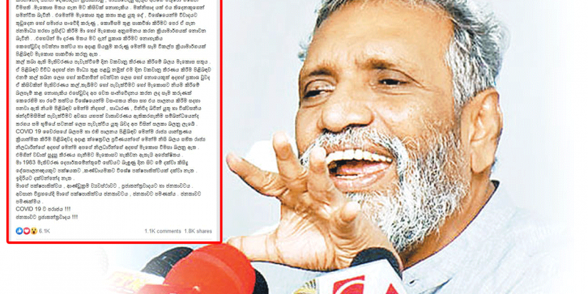සභාපතිවරයා සිය ෆෙස්බුක් ගිණුමේ සටහනක් තබමින් මේ බව ප්රකාශ කර ඇත.