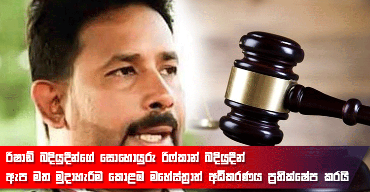 රිෂාඩ් බදියුදීන්ගේ සොහොයුරු රිෆ්කාන් බදියුදීන් ඇප මත මුදාහැරීම කොළඹ මහේස්ත්‍රාත් අධිකරණය ප්‍රතික්ෂේප කරයි