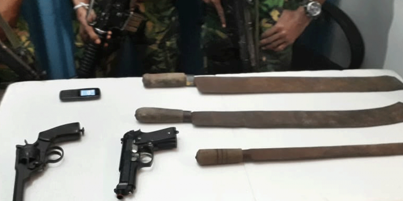 ඔහුගේ නිවස පරීක්ෂා කිරීමේදී වායු පිස්තෝලයක් හා වානේ කඩු තුනක් පොලිස් භාරයට ගෙන ඇති අතර වැඩිදුර විමර්ශන සඳහා සැකකරු වැල්ලම්පිටිය පොලීසියට භාරදී ඇත.