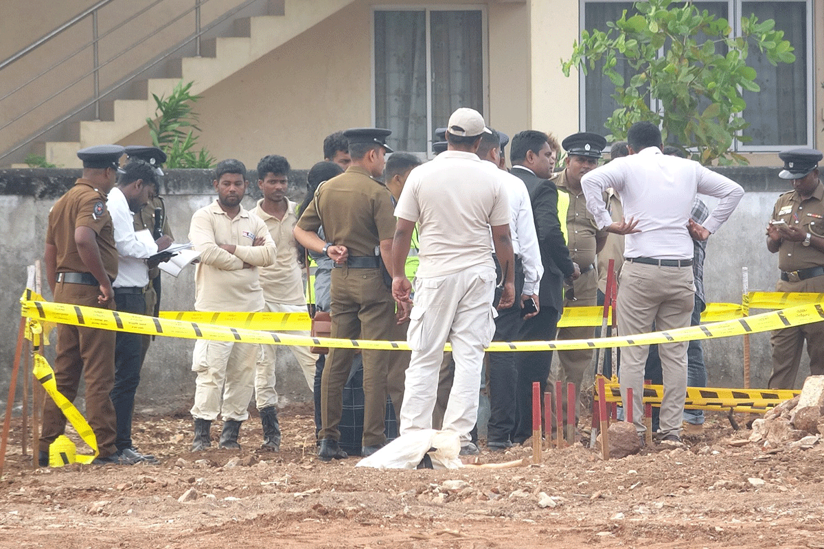 මුලතිව්,මාන්කුලම රෝහලේ නව වාට්ටු සංකීර්ණයක් සකස් කිරීමට බිම සකස් කිරීමේදී අස්ථි කොටස් කිහිපයක් හමුවු ස්ථානය පරීක්ෂා කිරීම මුලතිව් මහේස්ත්රාත් එස්.ලෙනින්කුමාර් මහතාගේ අධි