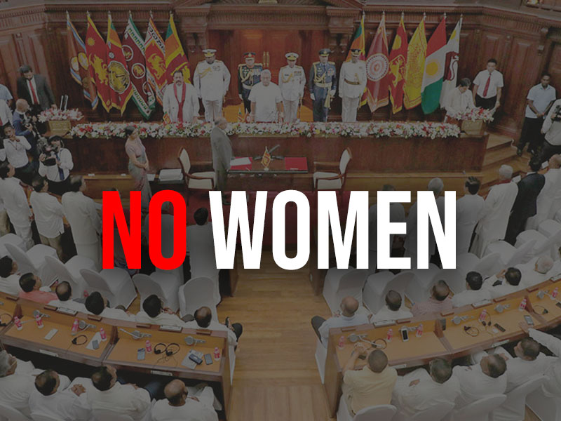 අද (18) දිනයේ පත්වූ අමාත්ය මණ්ඩලයට කිසිදු කාන්තා නියෝජනයක් ඇතුළත් කර නොමැති අතර කාන්තා හා ළමා කටයුතු අමාත්යාංශය ද ඇතුළත් කර නොමැත.