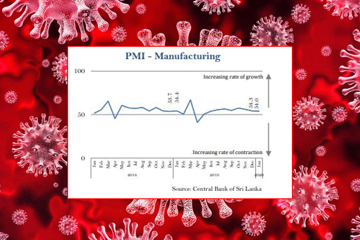 චීනයේ කොවිඩ් - 19 වෛරසයේ බලපෑම හේතුවෙන් ශ්‍රී ලංකාවේ කාර්මික හා සේවා අංශ පසුගිය දෙසැම්බර් මාසයේ සිට ජනවාරි මාසය අවසානය දක්වාම මන්දගාමී වේගයකින් වර්ධනය වී ඇති බව