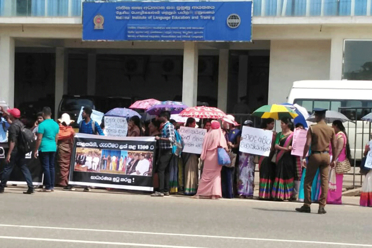 ජනාධිපතිවරණය හේතුවෙන් අතරමග නවතා දැමූ භාෂා පුහුණු ගුරුවරුන්ගේ පුහුණුව නැවත ආරම්භ කරන ලෙස රජයට බලකරමින් පැවැත්වුූ උද්ගෝෂණයක්