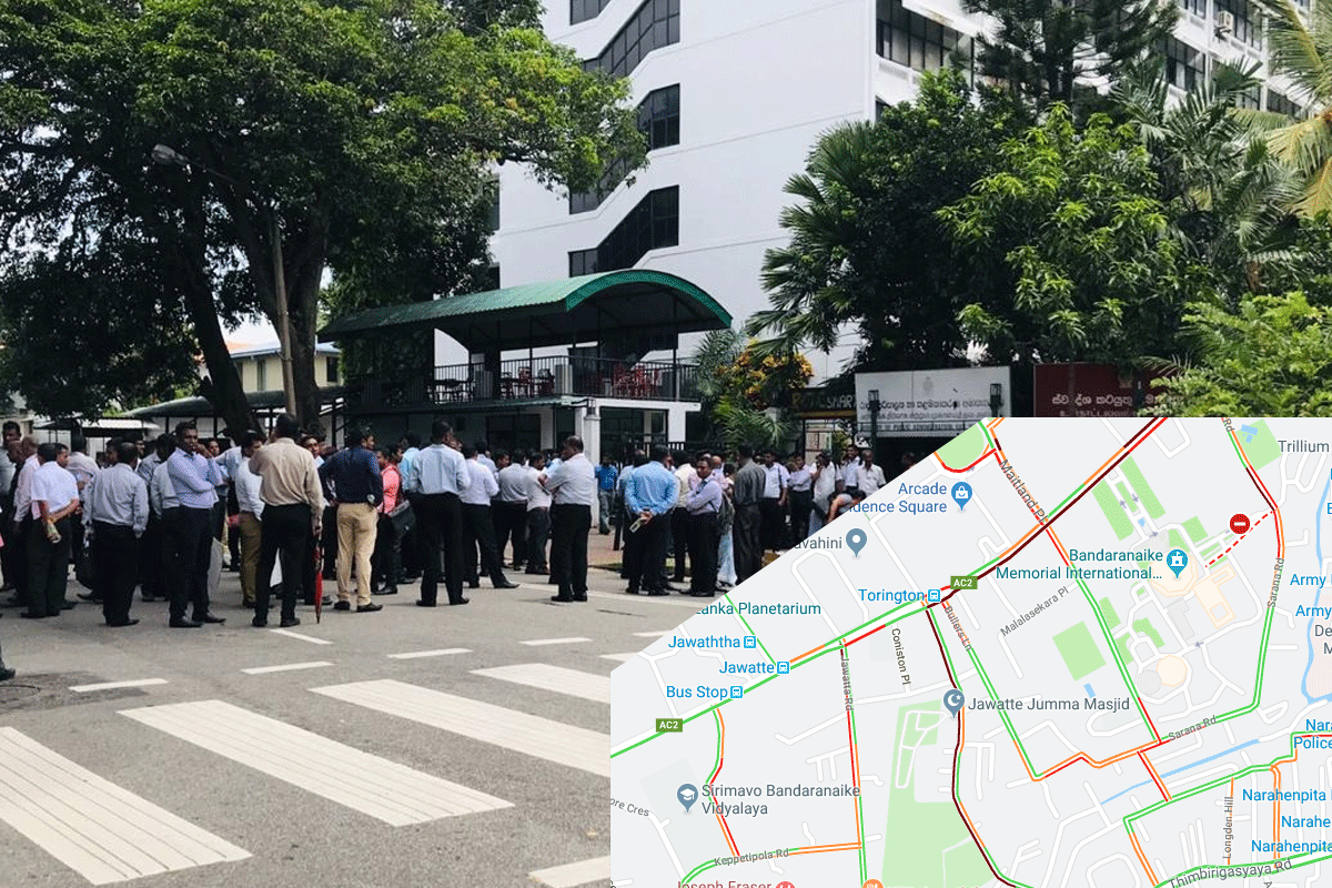 විරෝධතාවයක් නිසා නිදහස් චතුරශ්‍රය අවට මාර්ගවල දැඩි රථවාහන තදබදයක්