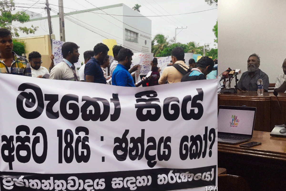 වයස අවුරුදු 18ට වැඩි තරුණ තරුණියන්ගේ ජන්ද බල අයිතිය තහවුරු කරන ලෙස ඉල්ලමින් ප්රජාතන්ත්රවාදය උදෙසා තරුණයෝ එකමුතුව සංවිධානය විසින් මැතිවරණ කොමිෂන් සභාව ඉදිරිපිට අද