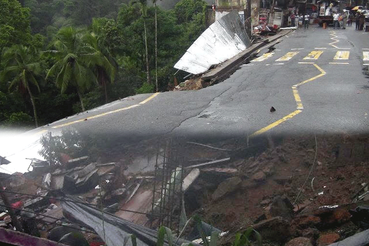 ගිනිගත්හේන නගරයේ වෙළදසැල් පෙලක් ගිලා බැසීමට ලක්වු බවත් එක් පුද්ගලයෙක් අතුරුදන් වී ඇති බවත් ගිනිගත්හේන පොලිසිය පවසයී.